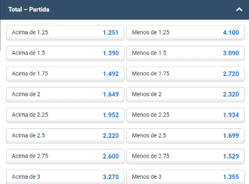 É um mercado de apostas criado por casas de apostas que tentam prever a soma total de gols da partida, com os seguintes: