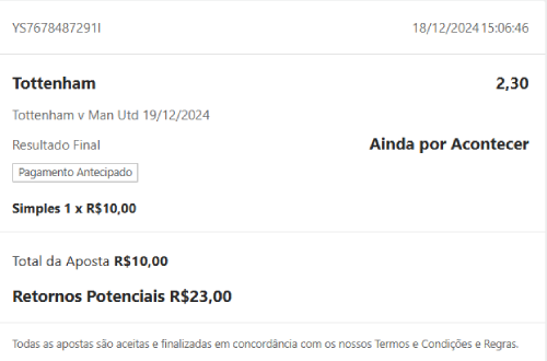 Nos bilhetes também haverá informações sobre a confirmação da aposta e o número de referência da mesma, que neste caso é YS7678487291I. O número de referência serve para você consultar o suporte caso tenha algum problema com a aposta, como ela ter sido finalizada de forma incorreta, o que acontece raríssimas vezes.