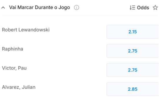 Como você viu no mercado acima, a aposta é concentrada em qual jogador marcará pelo menos 01 gol.